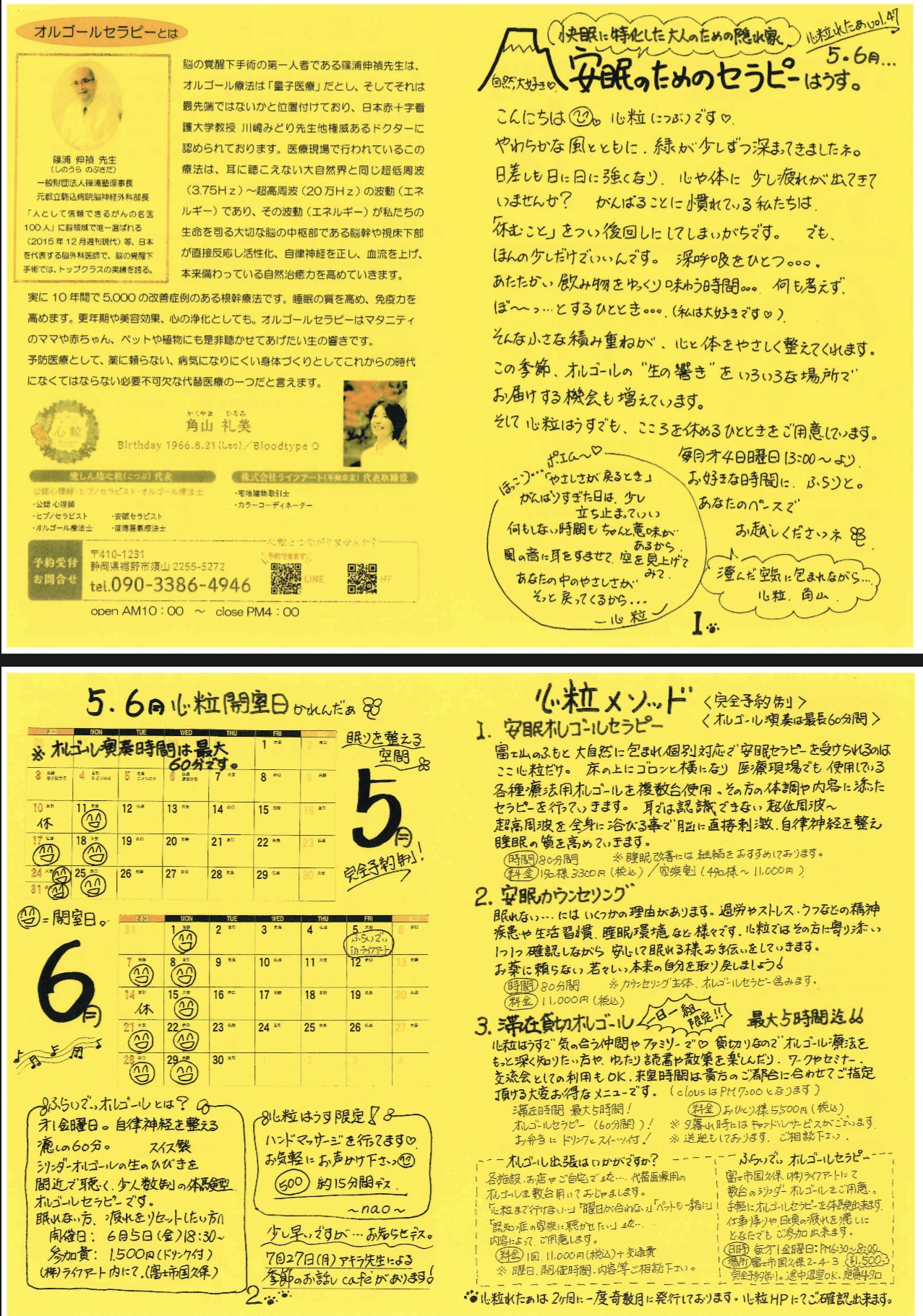 偶数月に発行しているお客様向けのご案内のお手紙が「心粒れたぁ」です。