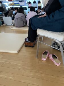皆さんで囲み、足に振動を感じながら。